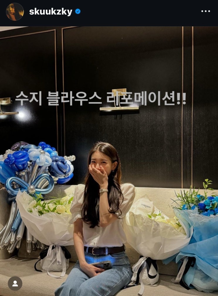 수지사복패션정보!! 수지시사회패션 블라우스 리포메이션 청바지 게스