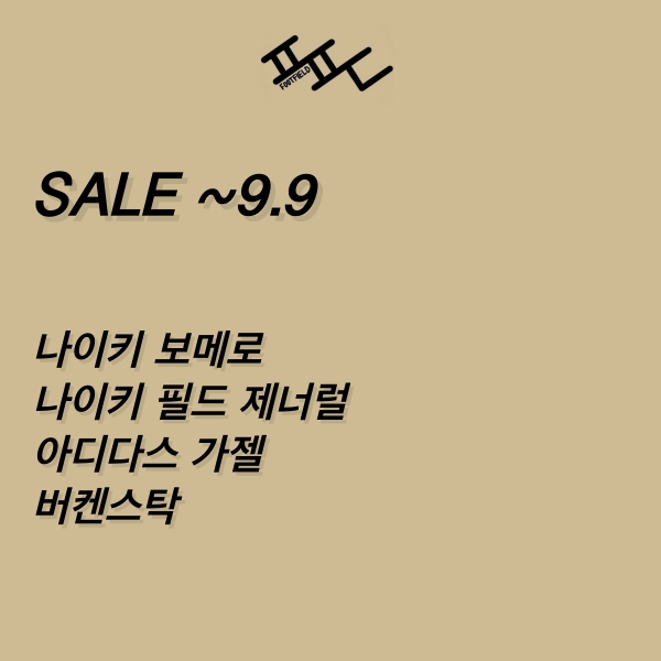 [2024년 9월 1차 풋필드 타임딜] 나이키 보메로, 나이키 필드 제너럴, 아디다스 가젤, 버켄스탁