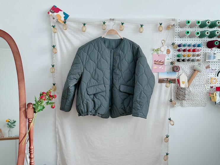 취미일기 [재봉] 145.항아리 4온스 누빔 나일론 원단 지퍼 점퍼 만들기