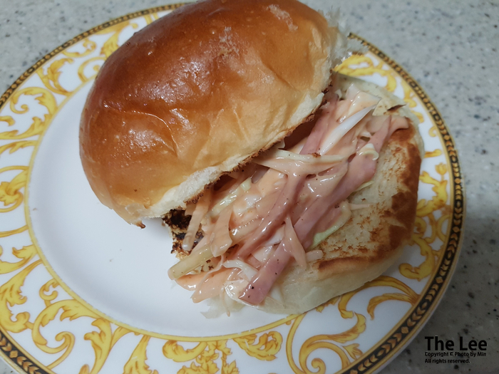 아삭한 양배추 샐러드 레시피 햄버거빵으로 만든 양배추 샐러드 샌드위치