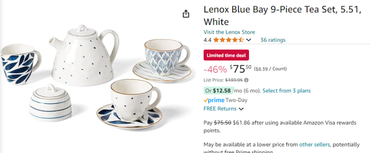 ♥ 너무예쁜 레녹스 블루베이 9pc 티세트 $139.95->$75.5세일해요!
