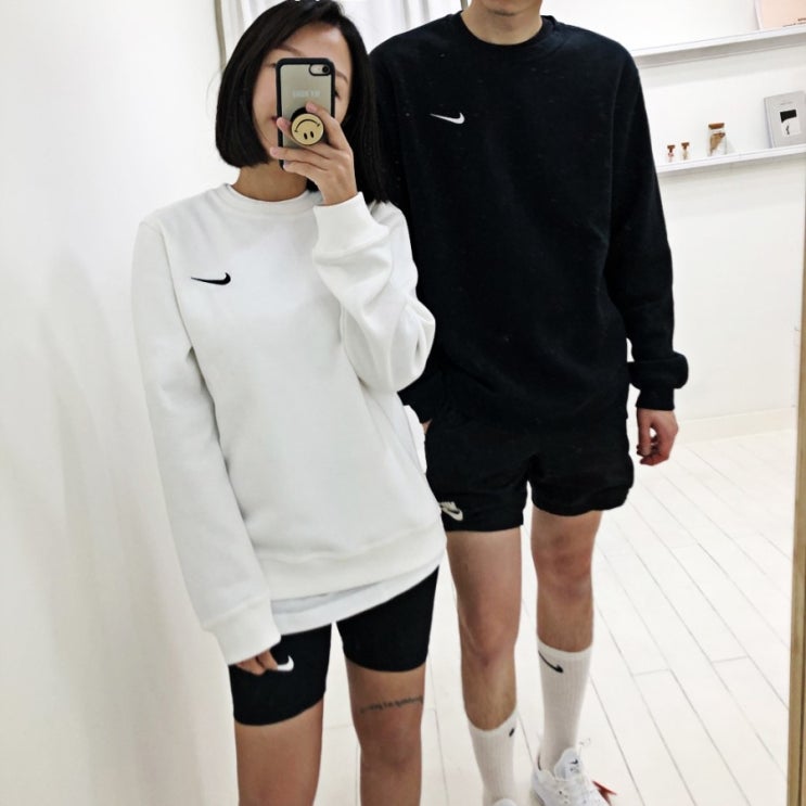 꾸준한 인기를 얻고있는 나이키 스우시 맨투맨 블랙 화이트에요! 클래식한 기본 디자인으로 출시된 모델로 ...