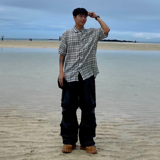밀로아카이브 옴브레 체크 하프 반팔 셔츠 코디 착용 및 상세 리뷰