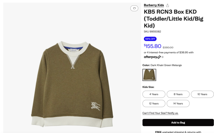 버버리 키즈 맨투맨 줍줍