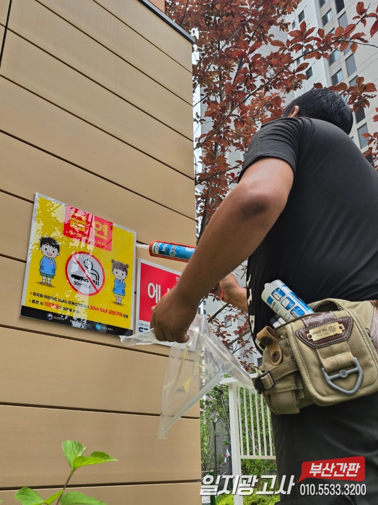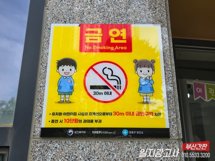 부산"투명아크릴 배면실사 포맥스표찰"금연 과태료 안내표지판 설치시공[부산간판:일지광고사]