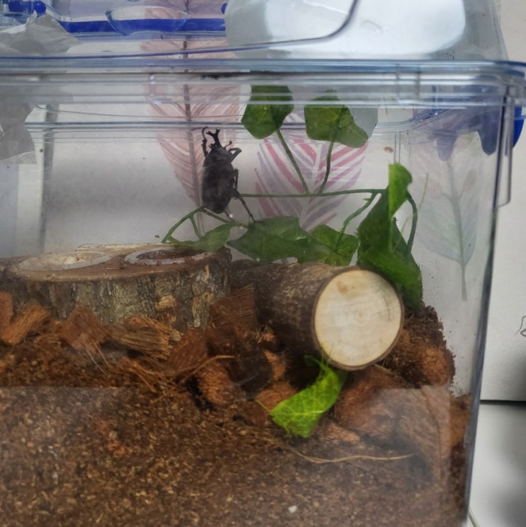 안녕하세요. 아드님이 기어이 조르고 졸라 할아버지,할머니가 살아있는 장수풍뎅이를 사주셨네요 ㅠ_ㅠ......