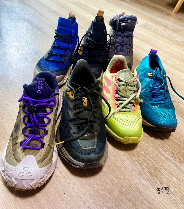 등산화 소개(K2 크로노스 그레이/나이키 ACG 마운틴 플라이 2 로우/나이키 와일드호스7/호카 스피드고트5)