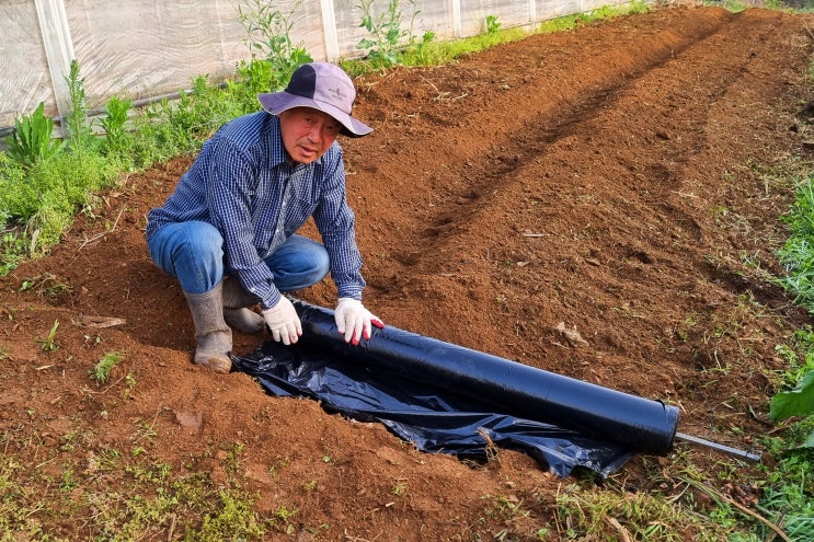 마늘밭 멀칭 비닐 벗기고, 살충제/살균제/1차 시비