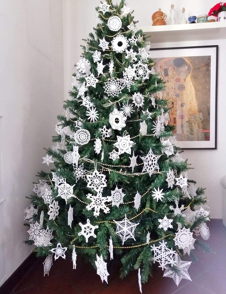 코바늘 뜨기가 취미라면 직접 뜬 섬세한 눈꽃 도일리 및 코바늘 오너먼트 만들기로 예쁜 크리스마스트리 장...