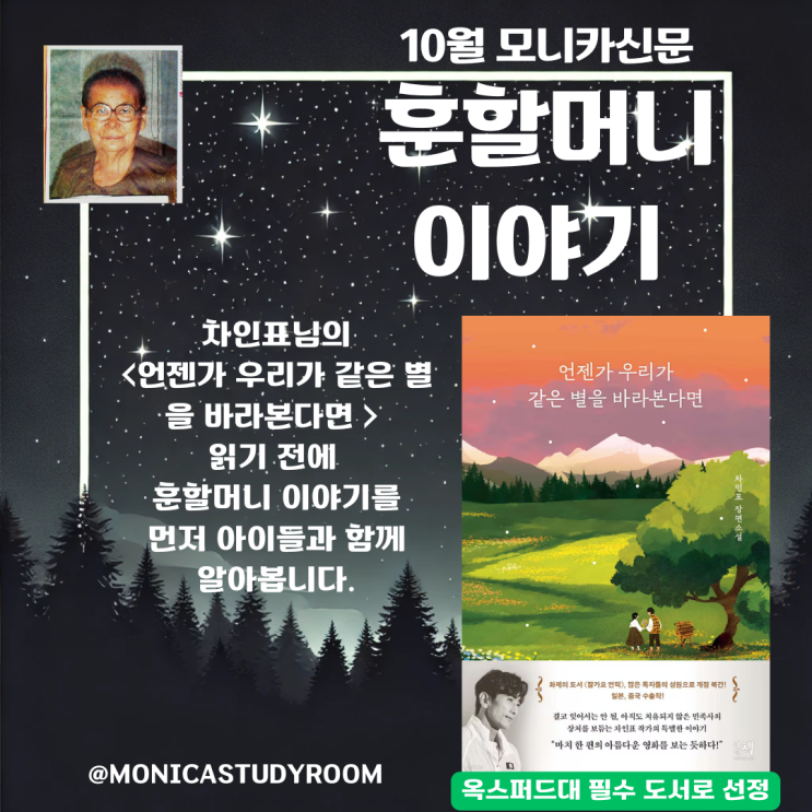 10월 신문 시작 | 훈할머니 이야기 | 차인표 | 옥스퍼드대 필수 도서 선정 | 언젠가 우리가 같은 별을 바라본다면