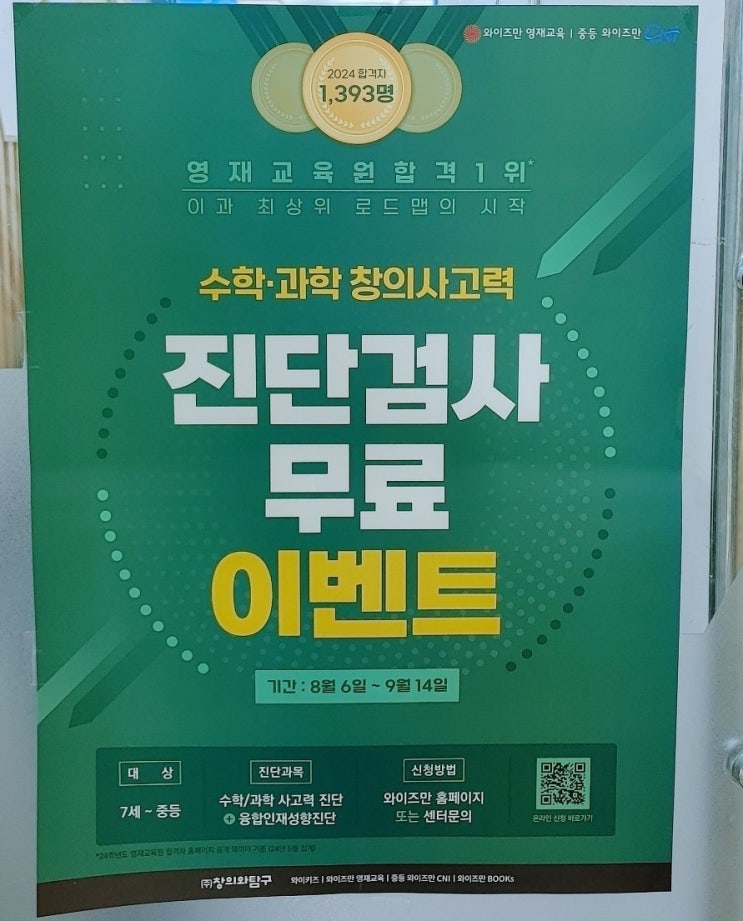 초등사고력수학 와이즈만 수학, 과학 무료진단검사 (~9.14)
