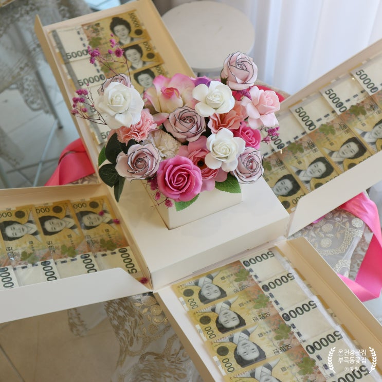 부산 서프라이즈 용돈박스 반전 생신선물 꽃집 비누꽃 생화 인기상품