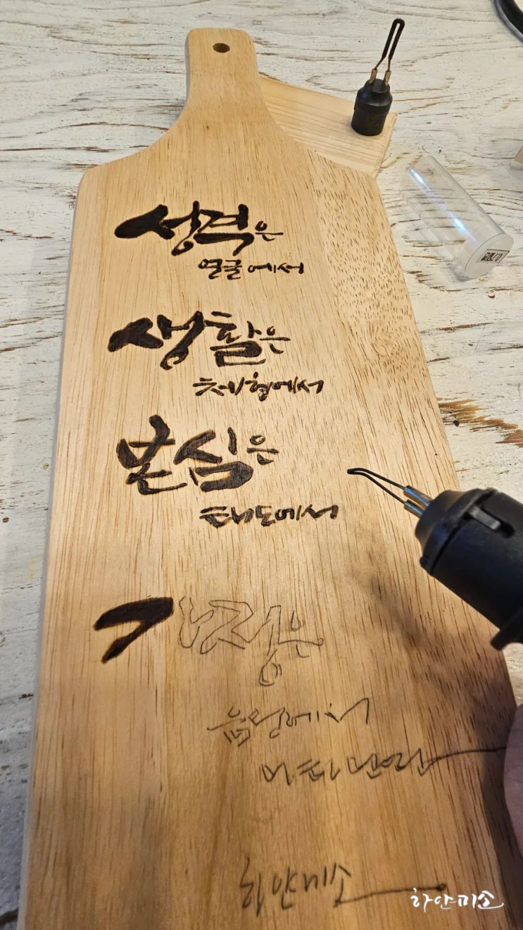 나무도마에 쓰는 캘리그라피, 우드버닝 선물 받는분이 좋아해요