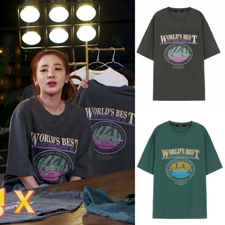 강민경이 착용한 레이브(RAIVE) 그래픽 티셔츠