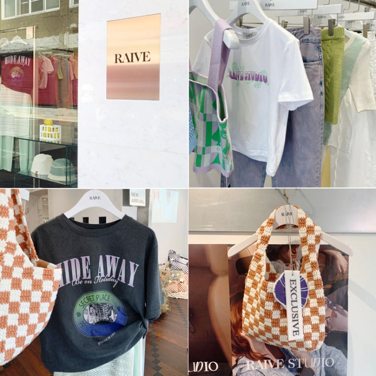 RAIVE 레이브 스튜디오 티셔츠 반팔 가방 니트백 매장 성수 플래그쉽스토어