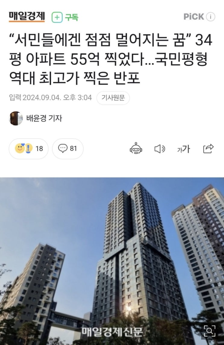 34평 55억 서민의 꿈 멀어진다 후 기자들이 정말 요즘 힘든 것인가 쇼츠랑 짤 틱톡 등이랑 경쟁해야 하다 ...