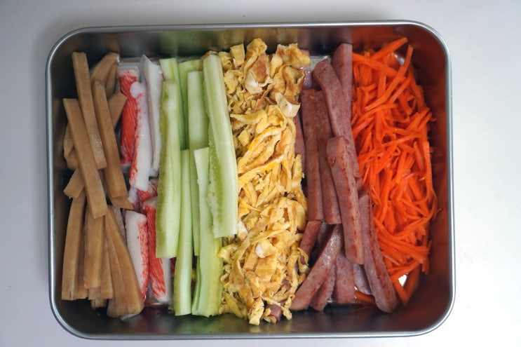 재료 준비에서부터 완성된 음식까지 사용하기 좋은 키친구 스텐 사각 밧드로 김밥 재료도 준비하고 오징어...