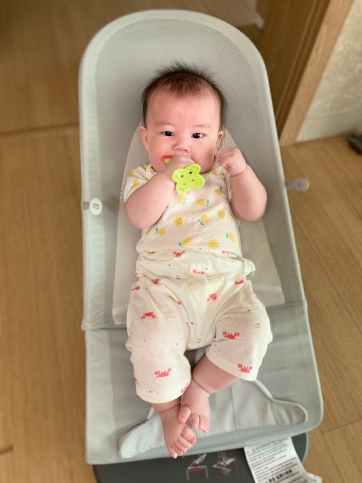 베이비뵨 바운서를 좀 늦게 데리고 왔어요ㅎㅎ 아무래도 역방쿠는 아기가 크면서 발버둥치니 금방 쑥 아래...