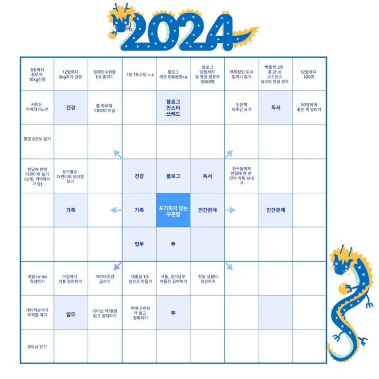 2024년 청룡의 해 갑진년이 밝았습니다. 새해가 되었으니 올해 목표를 세우고 새로운 곳에 하루 일상을 기...