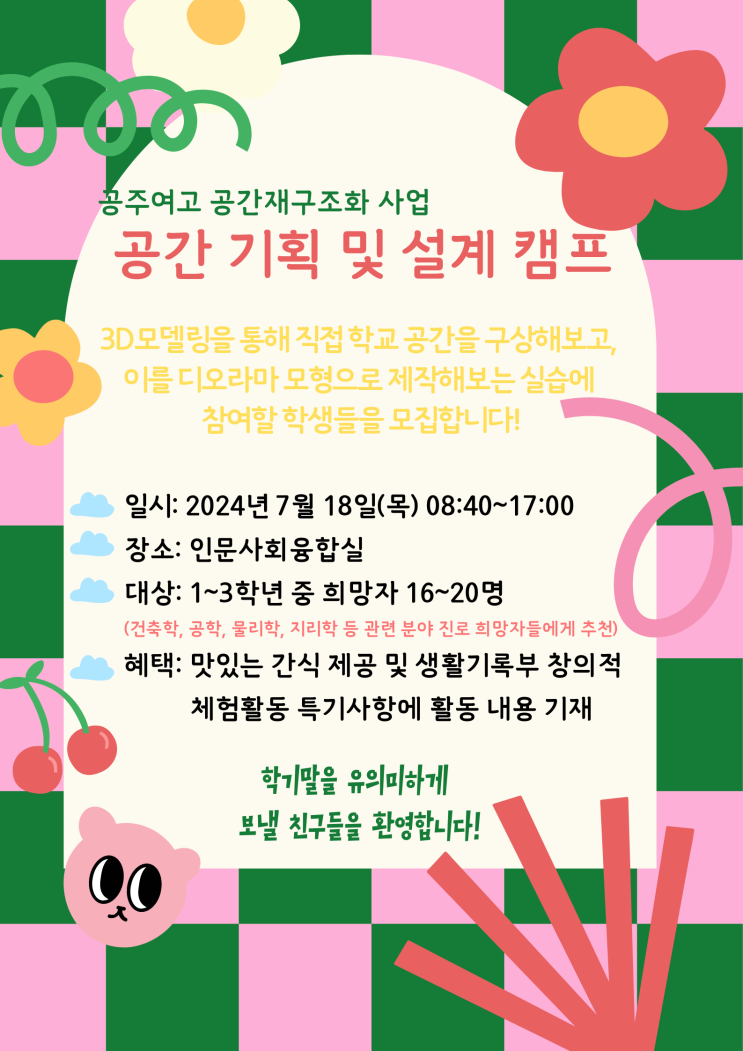 우리 학교는 구 그린스마트, 현 공간 재구조화 사업을 추진중이다. 그중 올해 계획했던 활동 한가지는 학생...