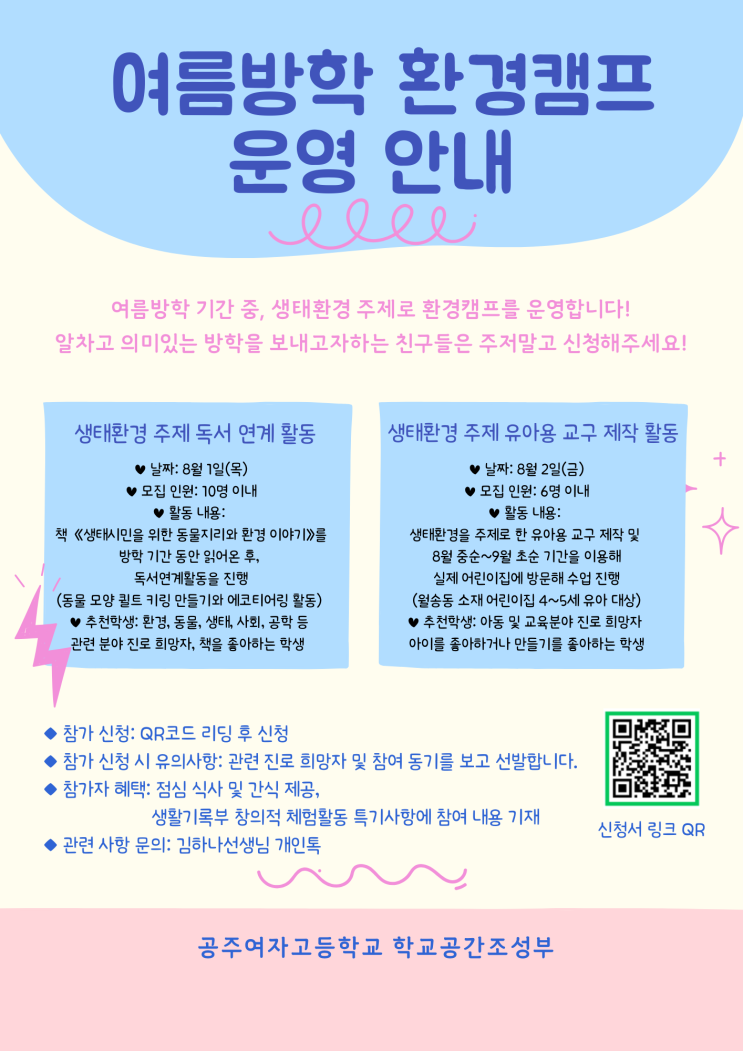 작년에 운영해보고싶었지만 실패했던 여름방학 환경캠프 올해는 꼭! 해야지 생각했는데, 기안올리는걸 차일...