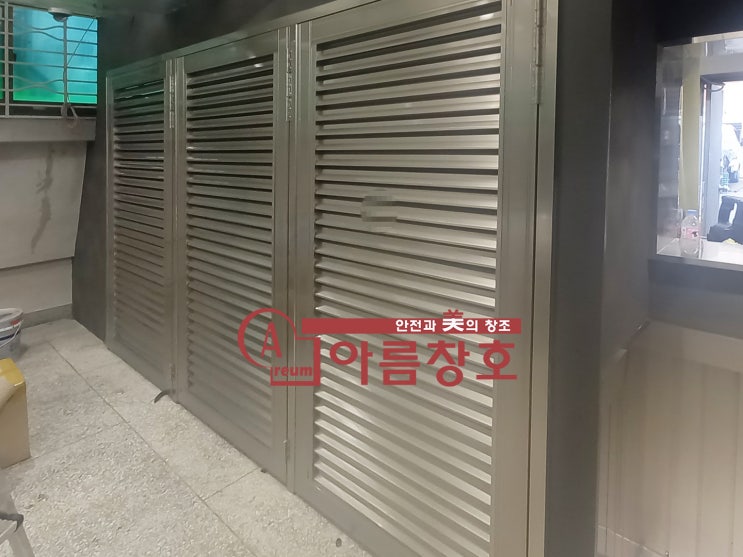 음식점 에어컨커버 (알루미늄 갤러리문) 시공 사례