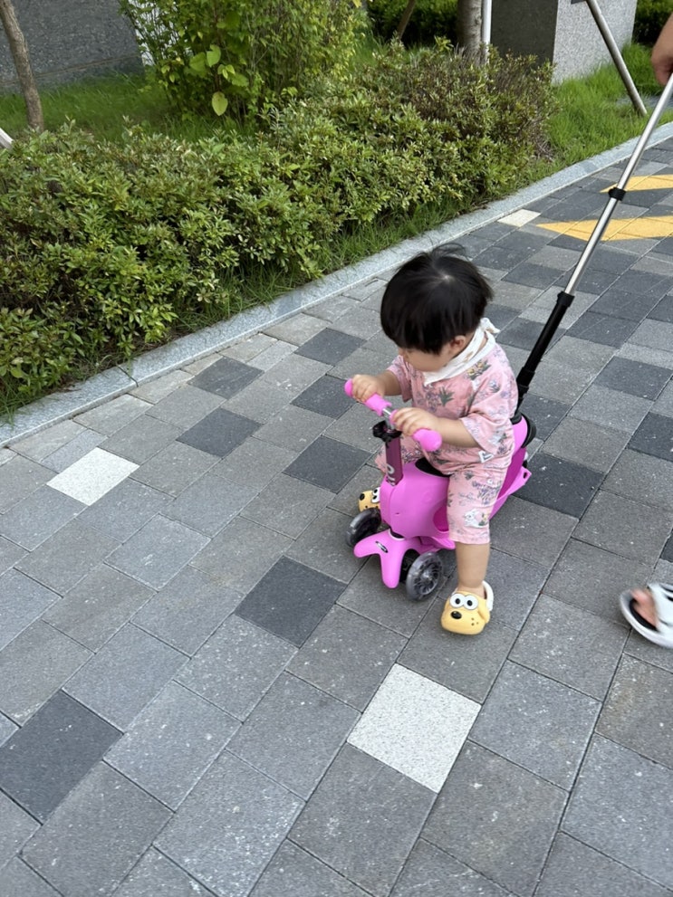안녕하세요 김오니입니다 요새 부쩍 빵빵이에 관심이 많아진 아기에게 첫 킥보드를 사주었어요 제가 구매한...