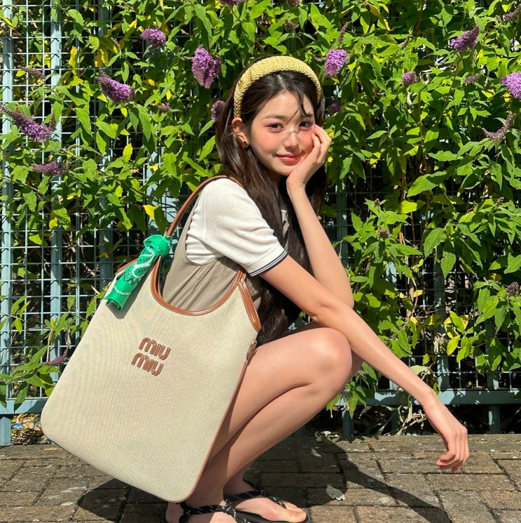 안녕하세요, 패션 블로거 효찌에요. 오늘은 장원영 미우미우 가방으로 핫한 여름에 들기 좋은 아이비 캔버...