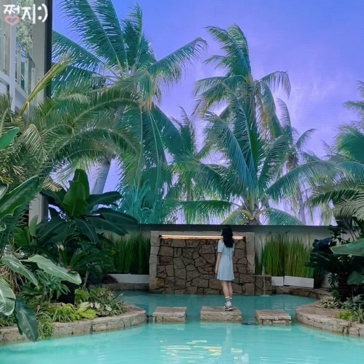 안녕하세요 쩡지입니다 오늘은 휴양지 컨셉의 대형카페를 방문했습니다 예쁜 인테리어 덕에 힐링하기도 좋...