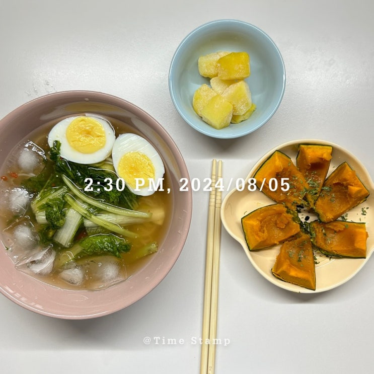 사과 복숭아 딱복이 맛난당 열무냉면 드디어 삶은계란 추가 ㅋㅋㅋㅋ 그리고 단호박찜 ♥ 엄마표 열무김치 ...