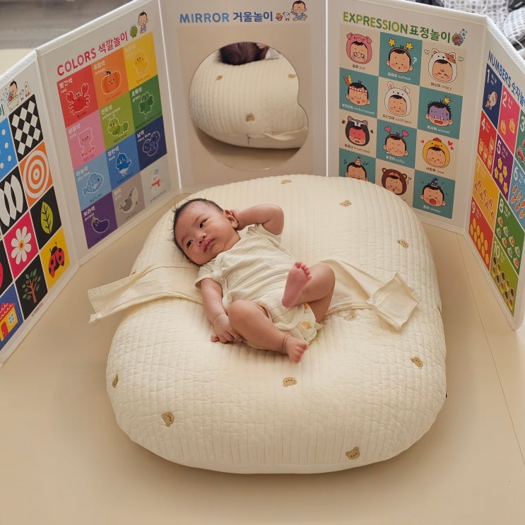 엔밀리밀리 아기병풍 신생아 터미타임 아기병풍 사용시기 실사 출산 전 친구에게 선물받은 아기 병풍! 사용...