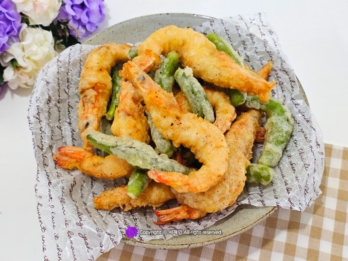 흰다리새우튀김 꽈리고추새우튀김 바삭한 튀김반죽 만드는법♪