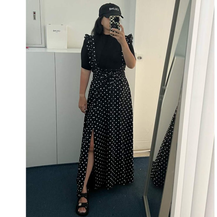 맥시롱스커트 도트원피스 멜빵치마
