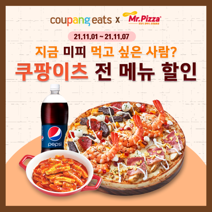 미스터피자X쿠팡이츠 쿠폰 할인!(11/1~11/7)