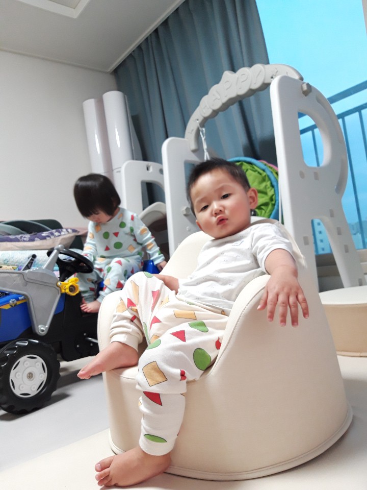 첫째는 더 어릴 때 부터 아기 쇼파 사주고 사용했었는데, 아무래도 둘째에게는 포커스가 맞춰지지 않다보니...