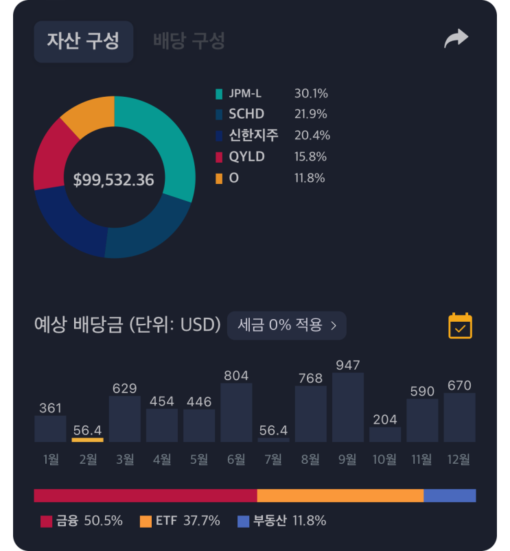 배당주 포트폴리오 구성 중 (SCHD, QYLD, 리얼티인컴, 신한지주 외)