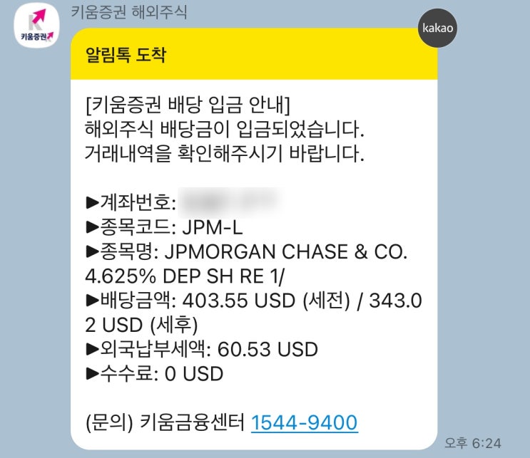 미국 고정배당 우선주 JPM-L 첫 배당금 입금 (Good)