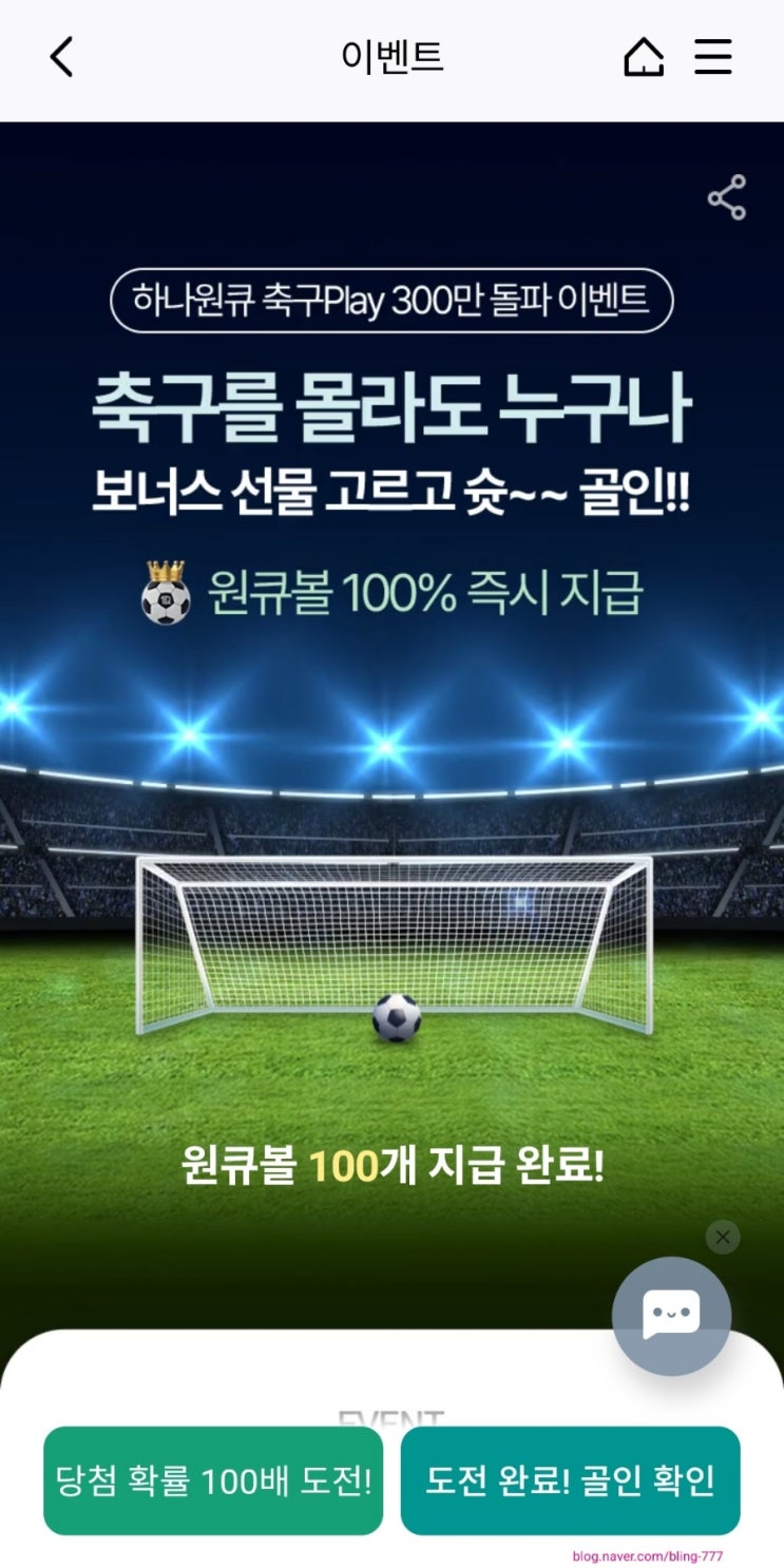 오늘 오랜만에 하나원큐에 로그인 했다 새로운 사실을 알았다. 하나원큐 축구play에서 이벤트 중인걸! ✅️...