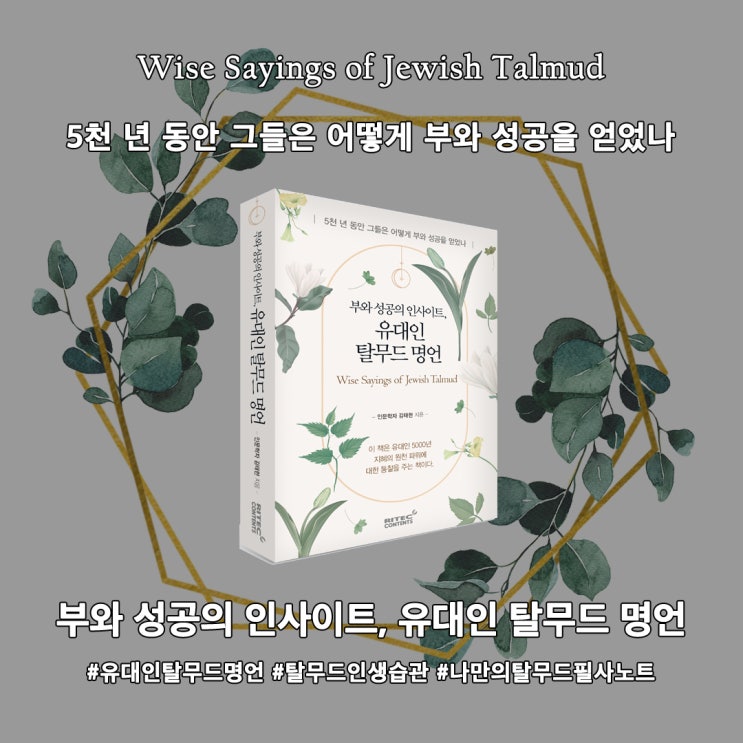 안녕하세요 이웃님들 ^^ 저희 책 '부와 성공의 인사이트, 유대인 탈무드 명언'이 곧 출간됩니다....