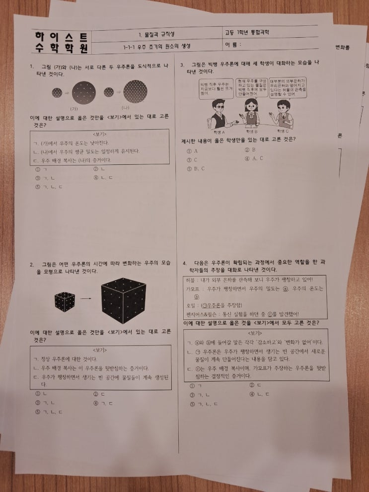 안녕하세요. 명지하이스트수학학원입니다. 하이스트수학학원에서 예비 고1 학생들을 대상으로 통합과학 수...