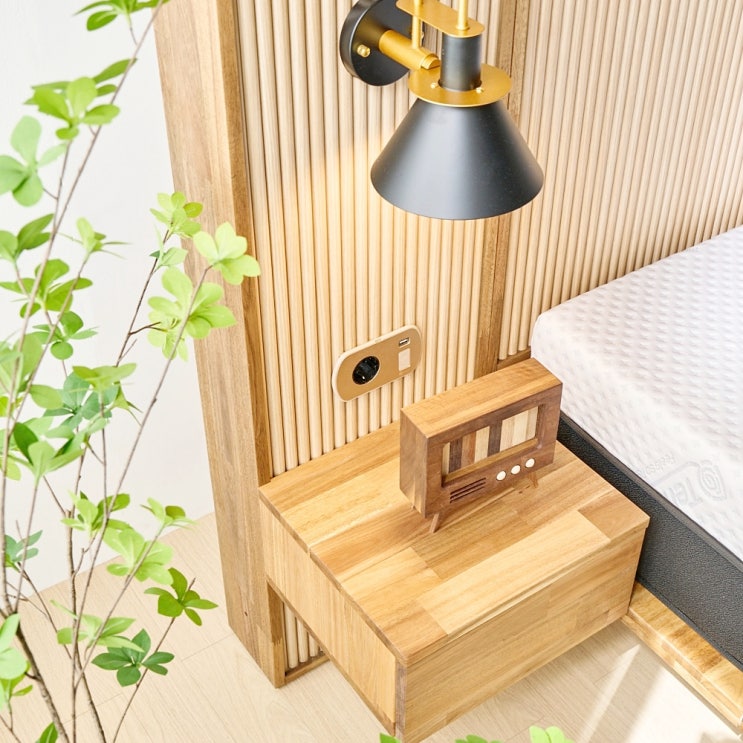 “수납부터 충전 조명까지 다 갖춘 침대” 고무나무 저상형침대 / 청북가구단지 청북까소엔