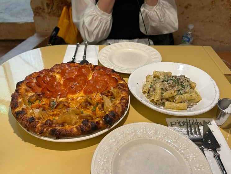 한남동 파이브 그라운드 페퍼로니와 옥수수 반반과 파스타