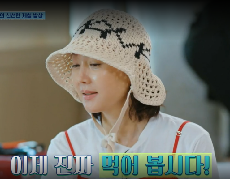 언니네 산지직송 4회 옷 패션 염정아 모자 바잘 VARZAR 보닛햇 베이지 반팔티 Mmlg 엠엠엘지 NOT...