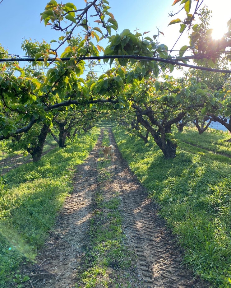 비가 오지 않으면 쉬는 날도 없는 시기이다. 배열매 솎다가 잠시 곰이 사진을 찍어본다. 사과 열매도 솎을 ...