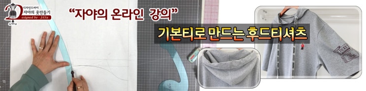 자야쌤 의 온라인 강의-후드패턴뜨기+후드티제작하기(다이마루의 모든것) 신청 해 주세요!