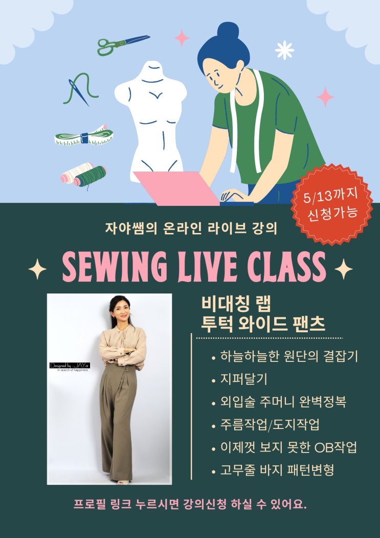 자야쌤의 온라인 소잉 클래스 6-7월 수강신청 해주세요.(6/10까지 가능)