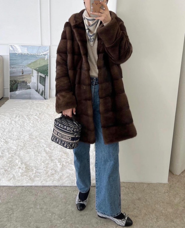 하프기장 밍크이지만 무겁지 않고 간편하게 걸치기 좋고 가격도 좋은 제품이죠. 개인적으로 넘 좋아하는 옷...