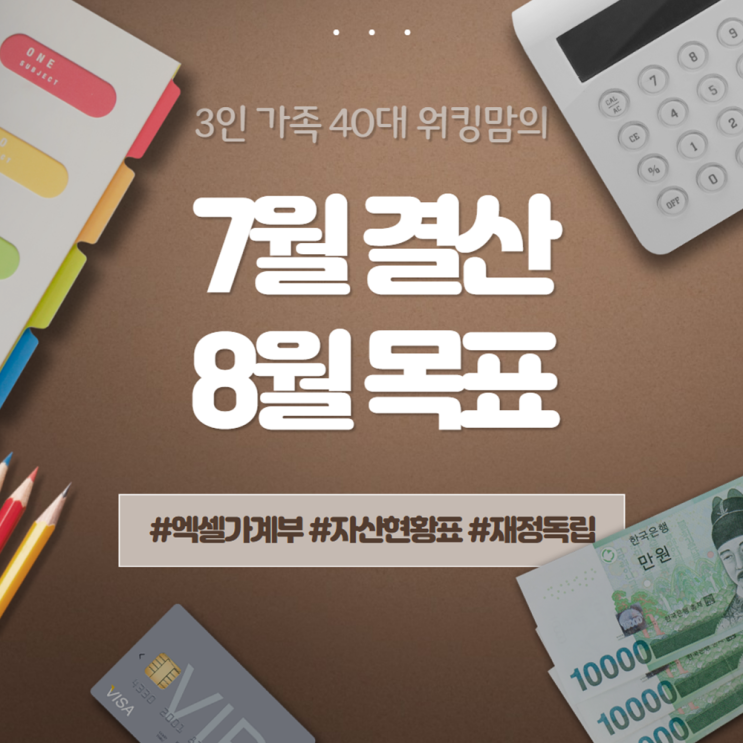 7월 현금흐름 자산현황 결산 8월 목표 (3인 가족 40대 워킹맘의 엑셀가계부)