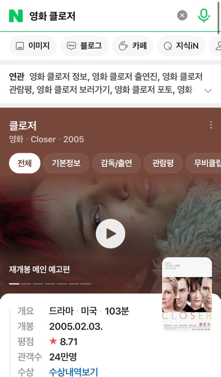 영화 클로저 ㅡ안녕 낯선사람