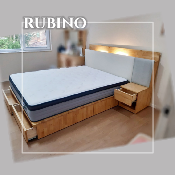 원목침대 프레임 추천 | 조명 콘센트 USB포트 2개 통판 서랍 협탁 | 킹사이즈 | 동탄 내뜰애타운하우스 | 루비노 가구